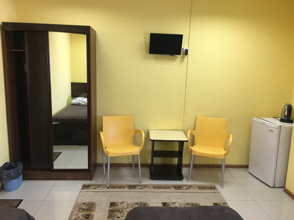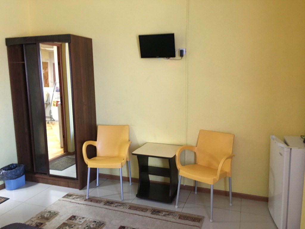 Душ и туалет общего пользования. В номере есть шкаф, тумбочки, чайник, холодильник и телевизор.