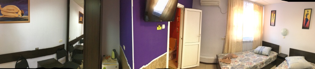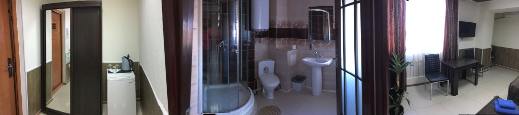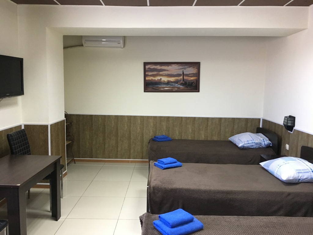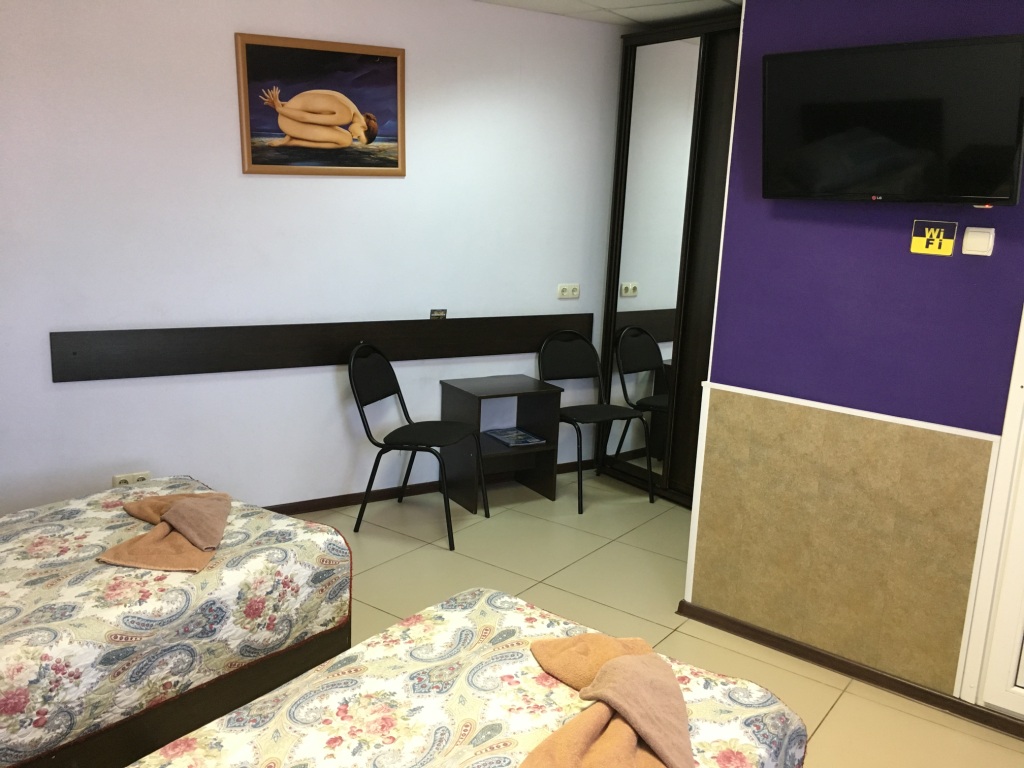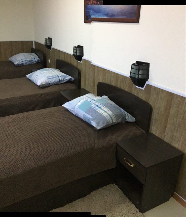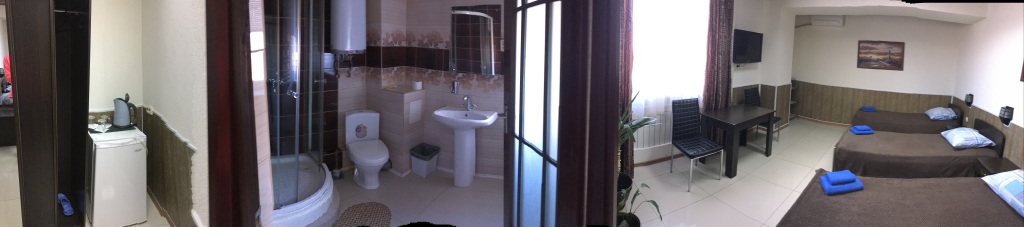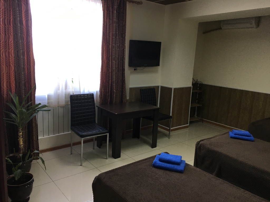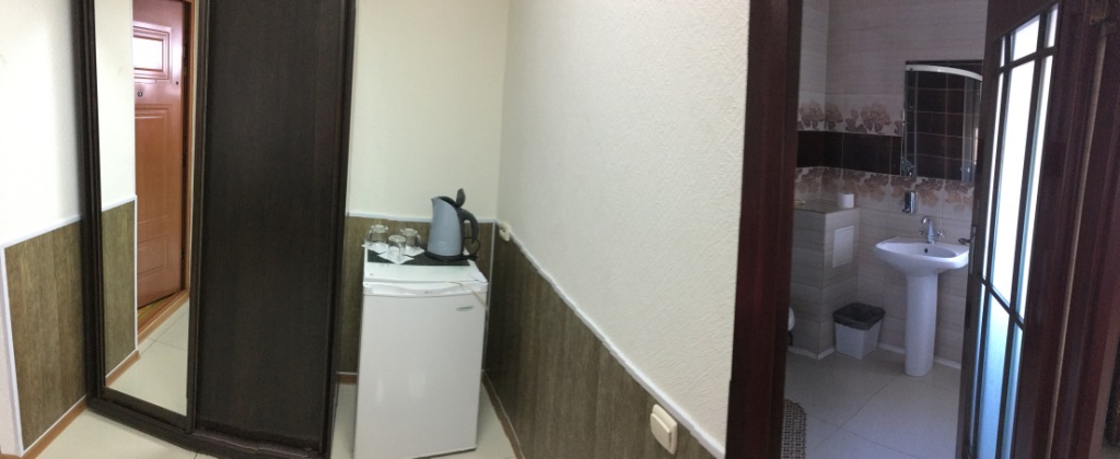 Душ и туалет в номере. В номере есть шкаф, тумбочки, чайник, холодильник, кондиционер и телевизор.