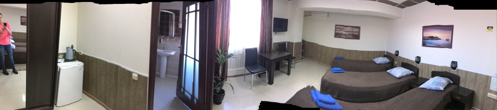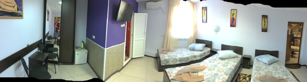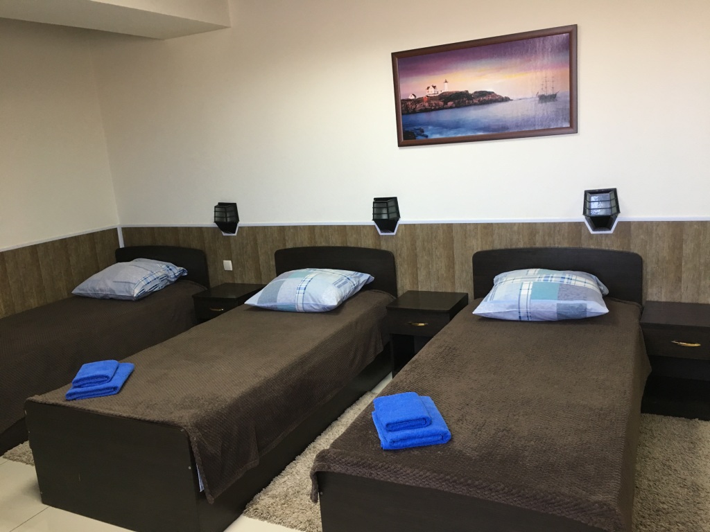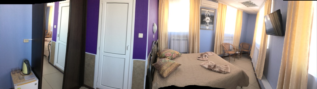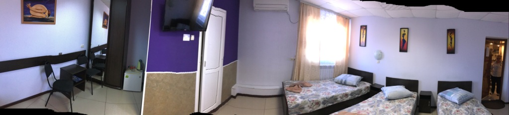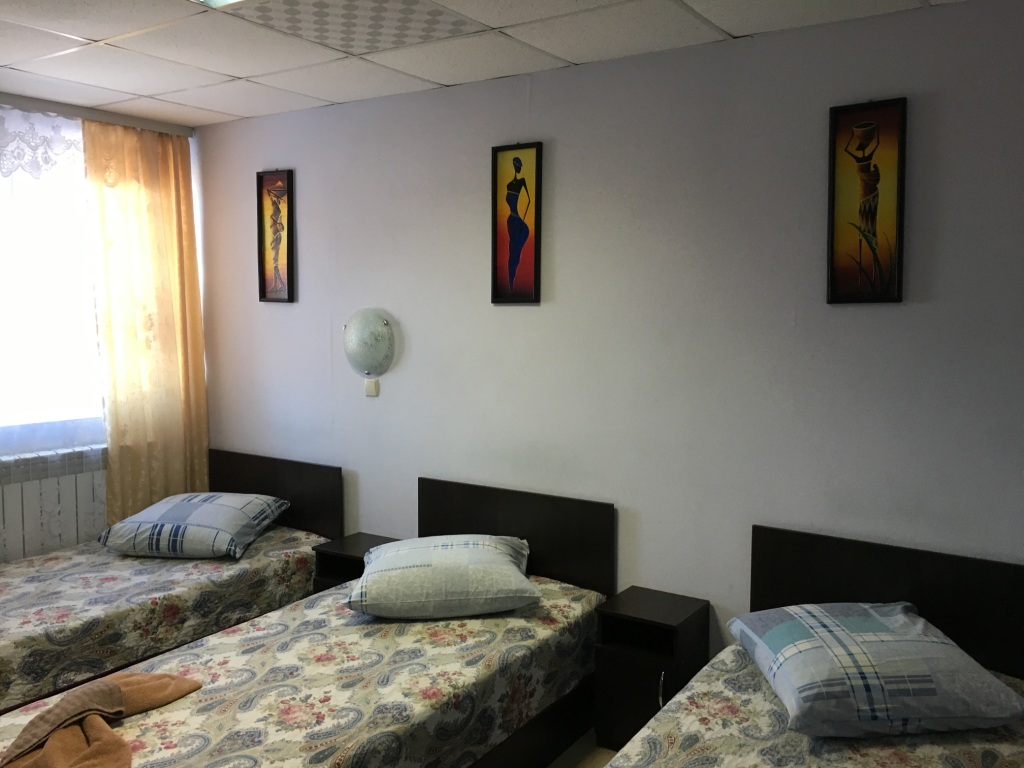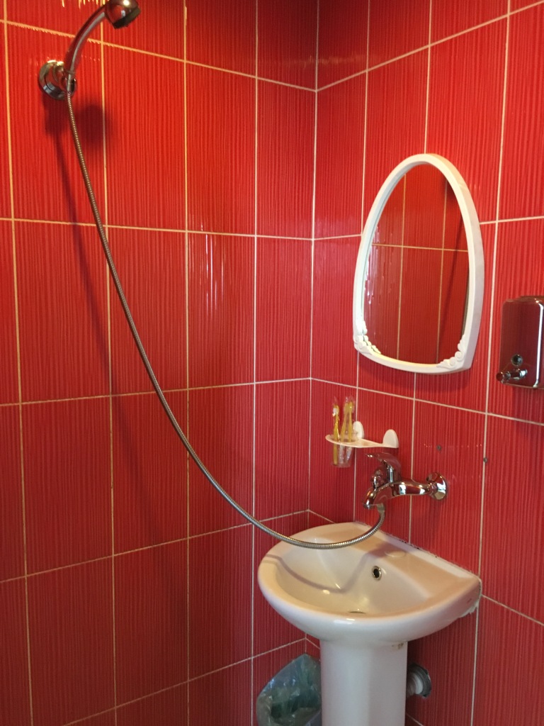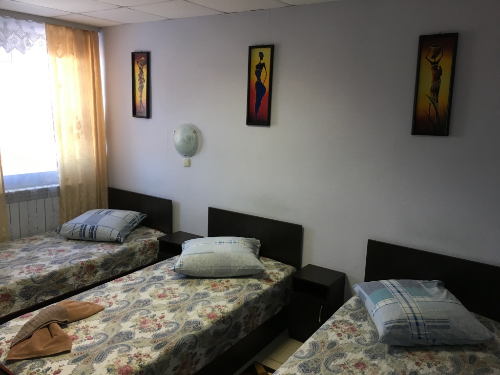 Душ и туалет в номере. В номере есть шкаф, тумбочки, чайник, холодильник, кондиционер и телевизор.